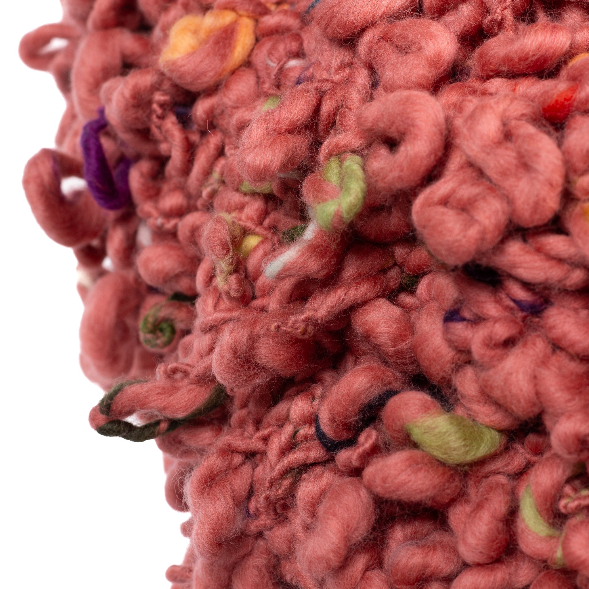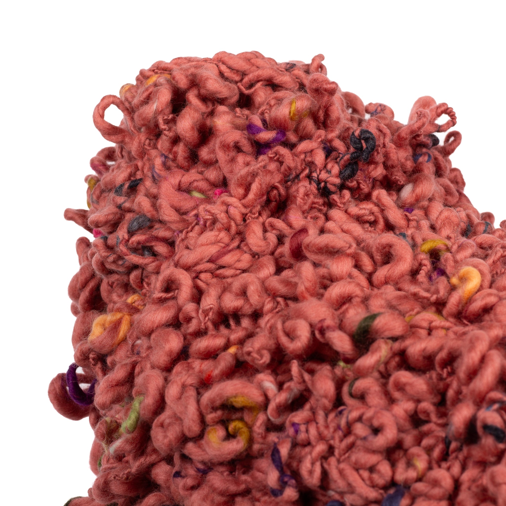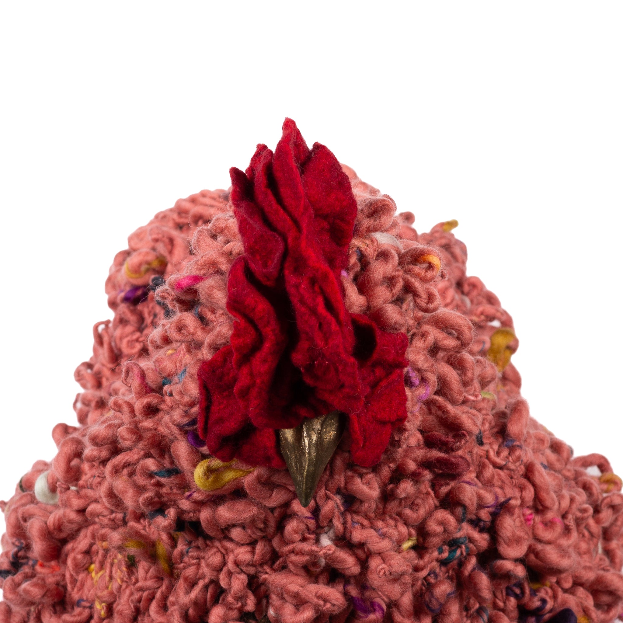 Masala is a Big Chicken Footstool whose feathers are fashioned with hand-knit 100% Merino wool. She is looking for a good home.