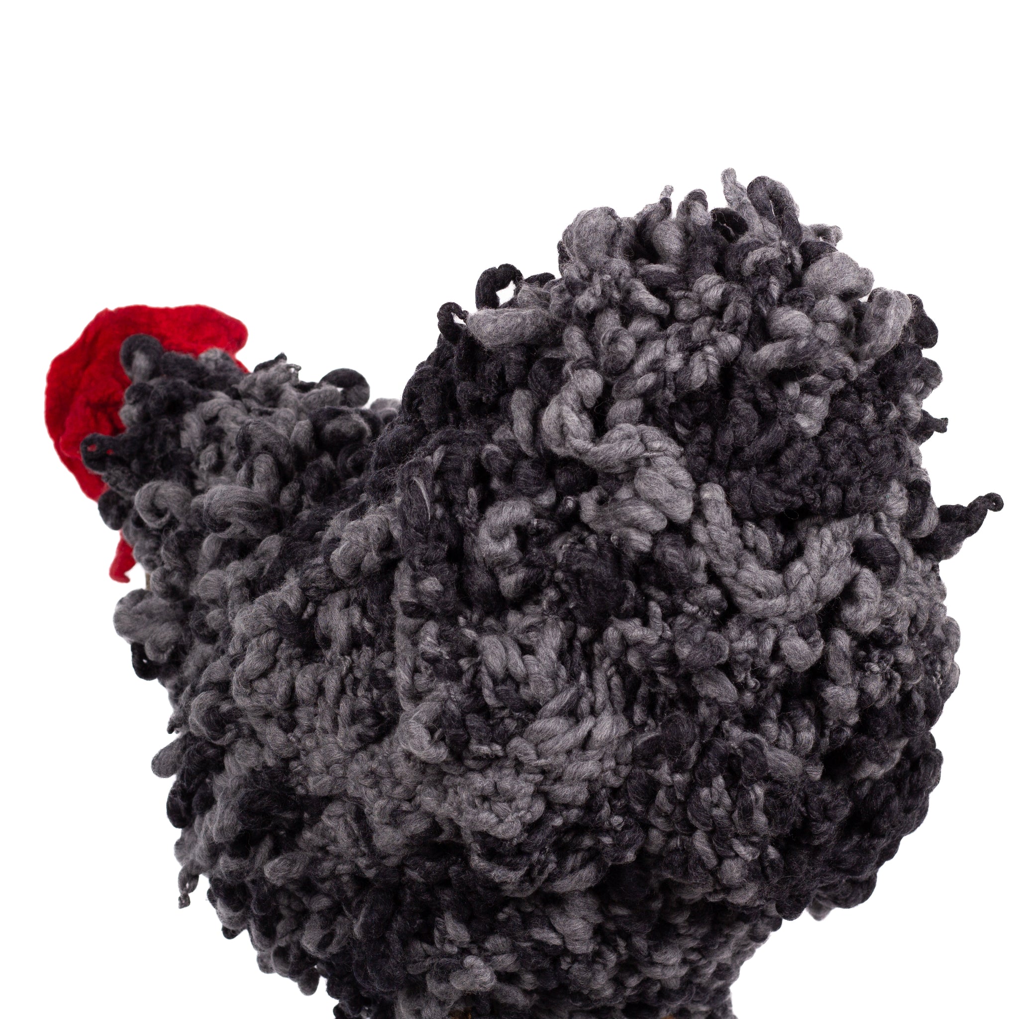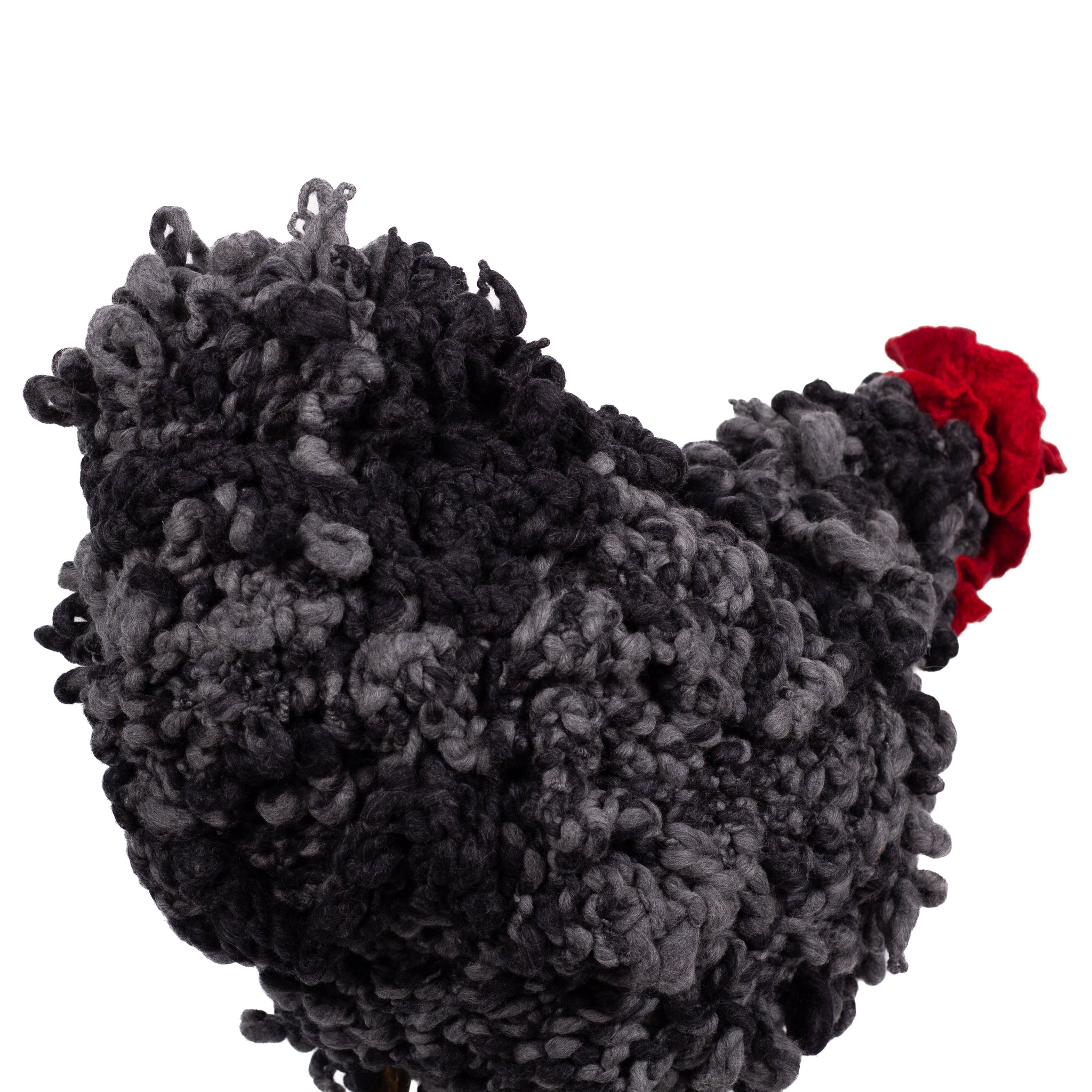 Van is a Chicken Little Footstool whose feathers are fashioned with hand-knit 100% Merino wool. He is looking for a good home.