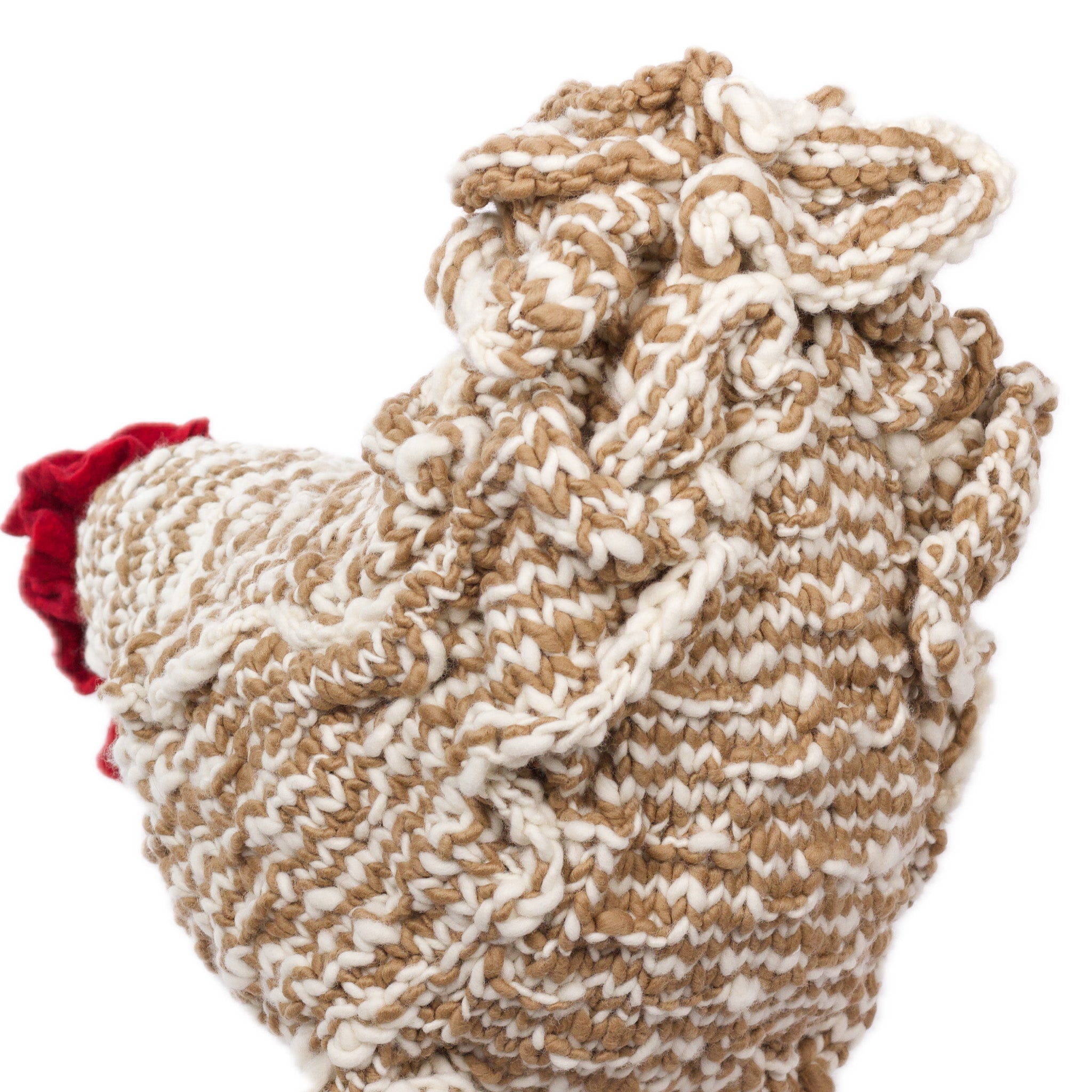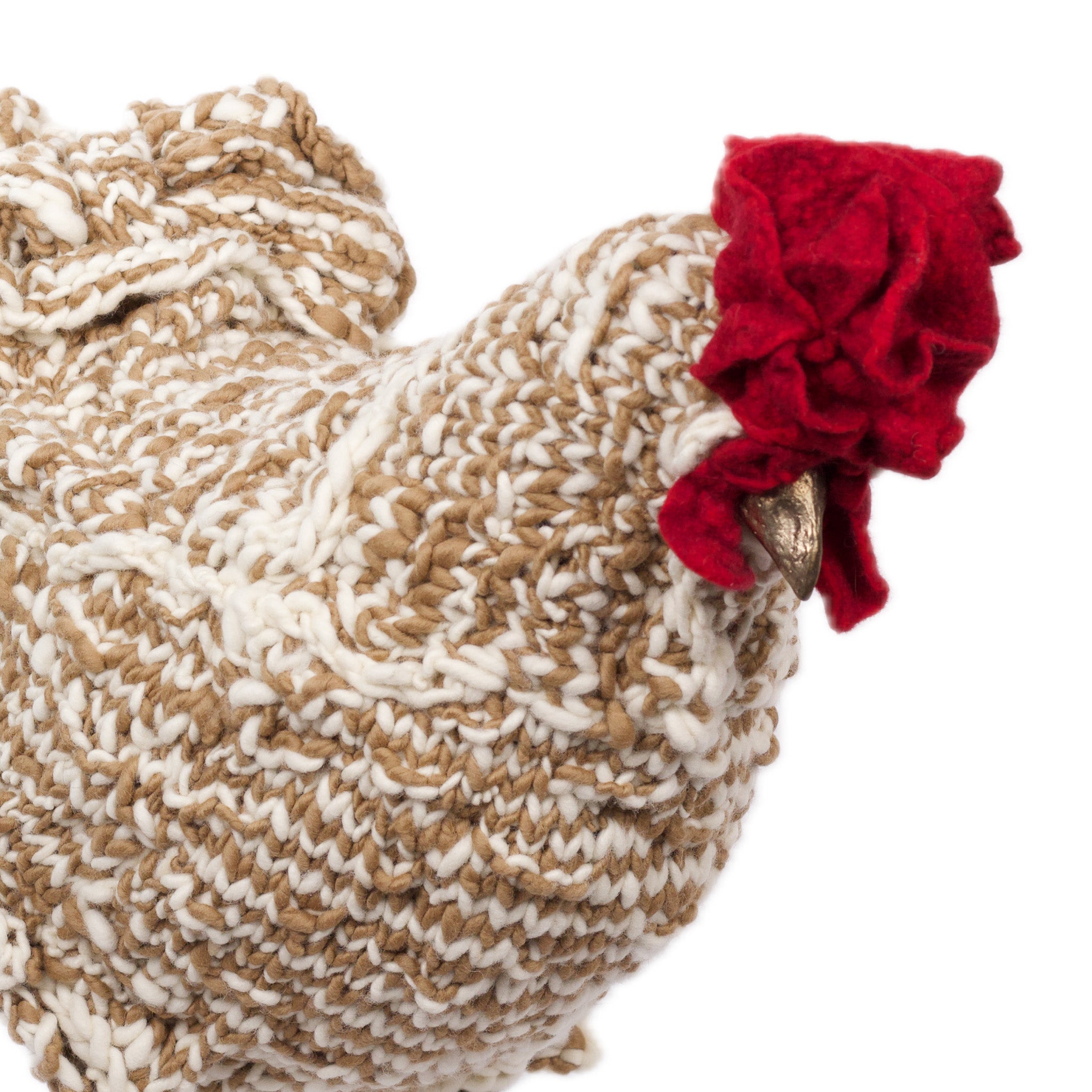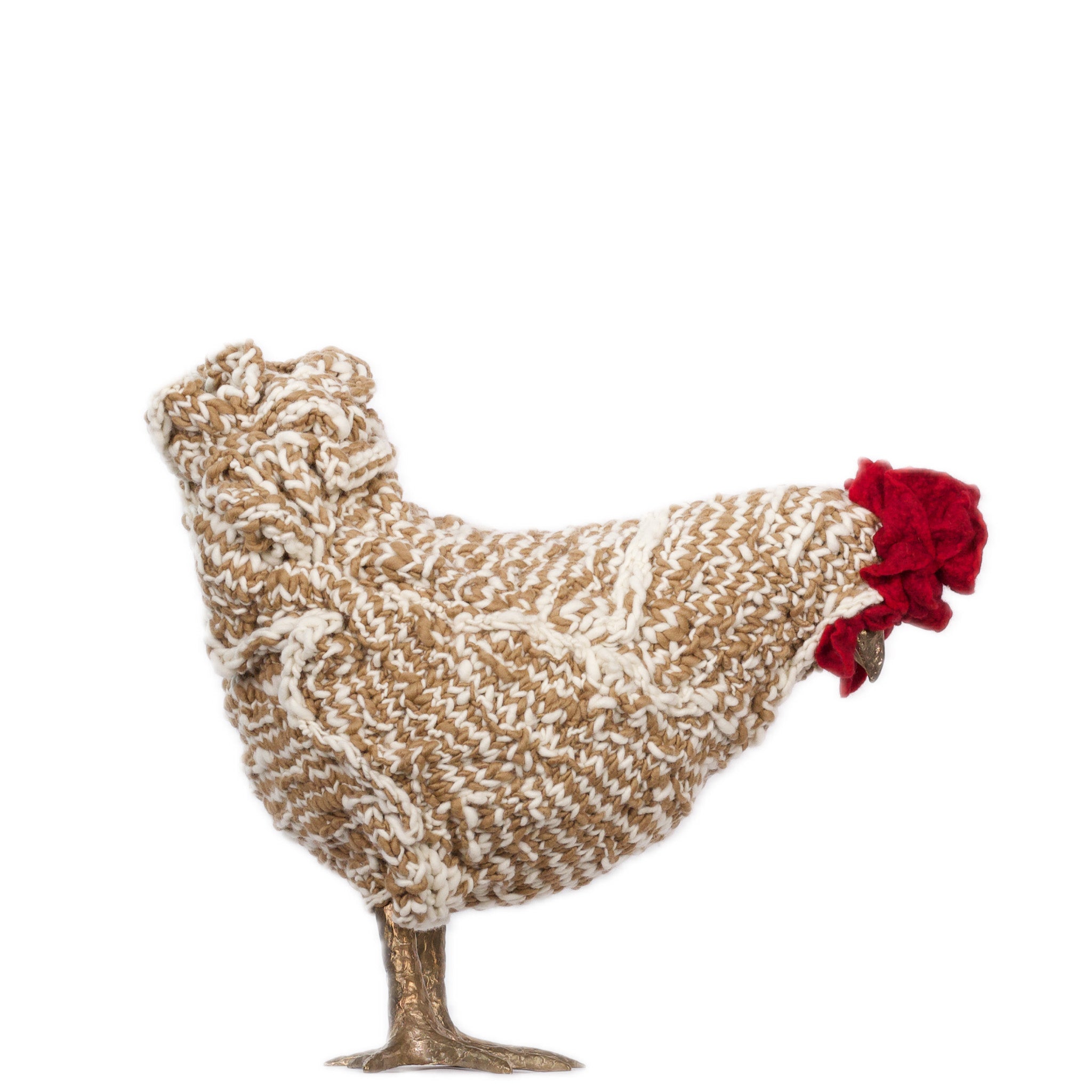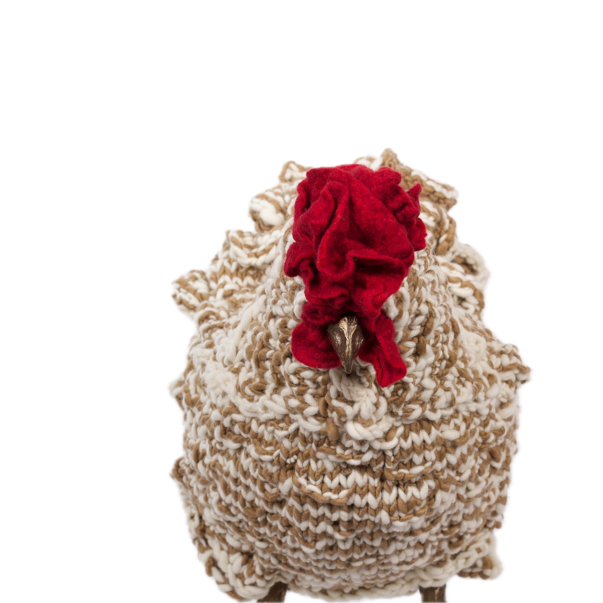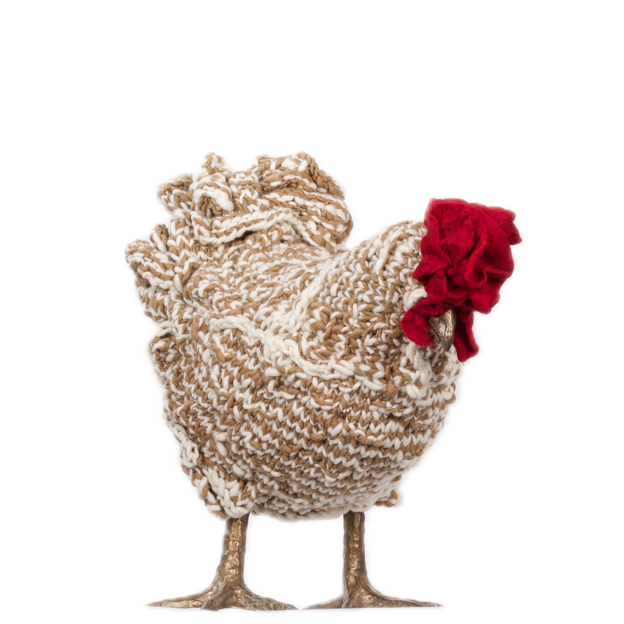 Darcy is a Chicken Little Footstool whose feathers are fashioned with hand-knit 100% Merino wool. She is looking for a good home.