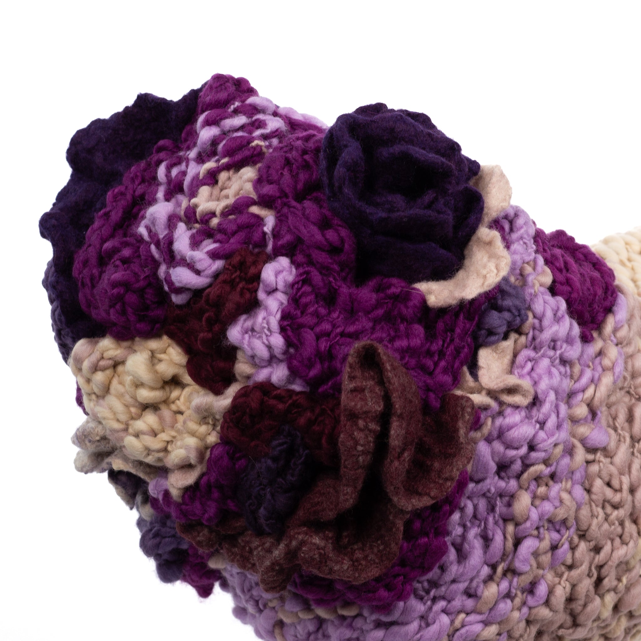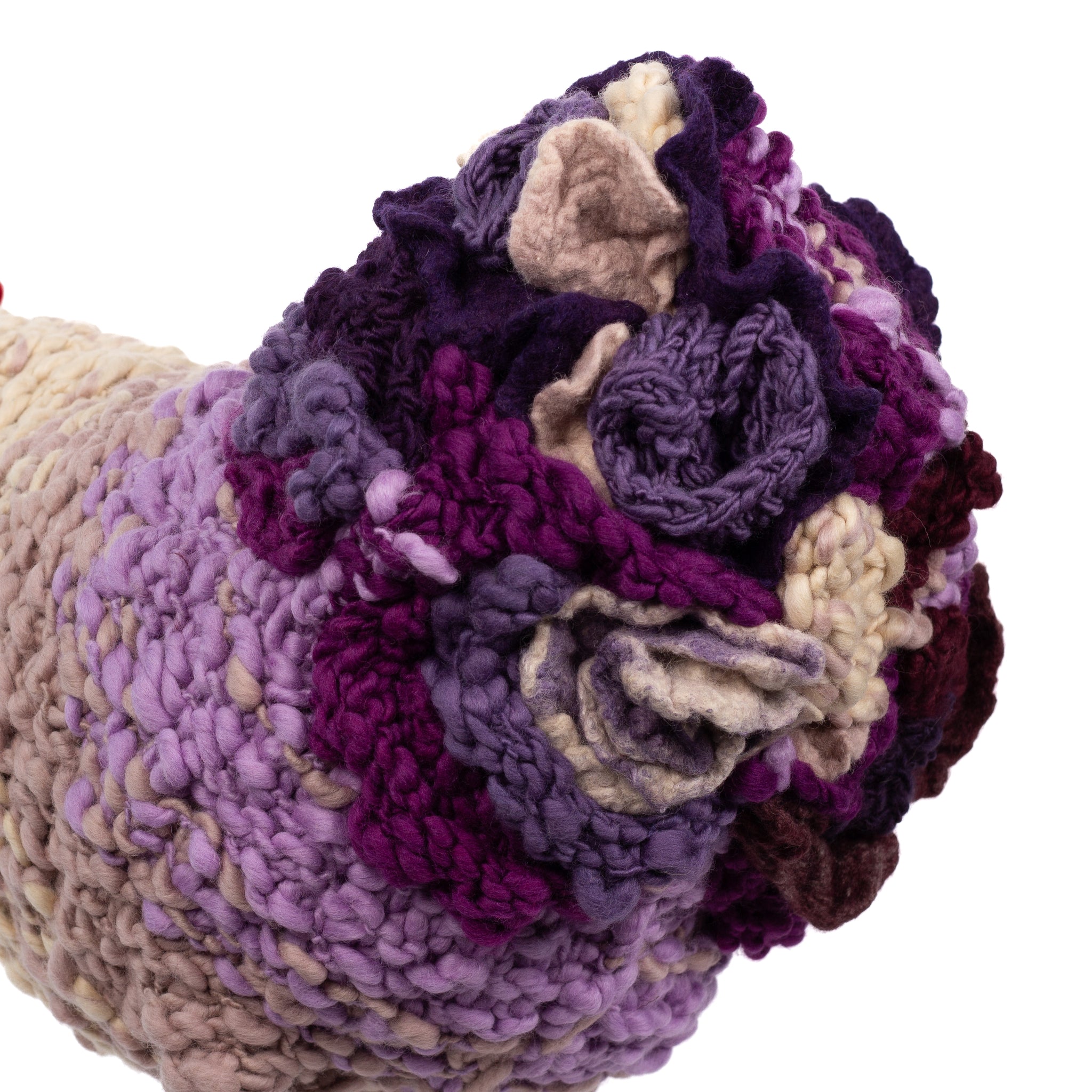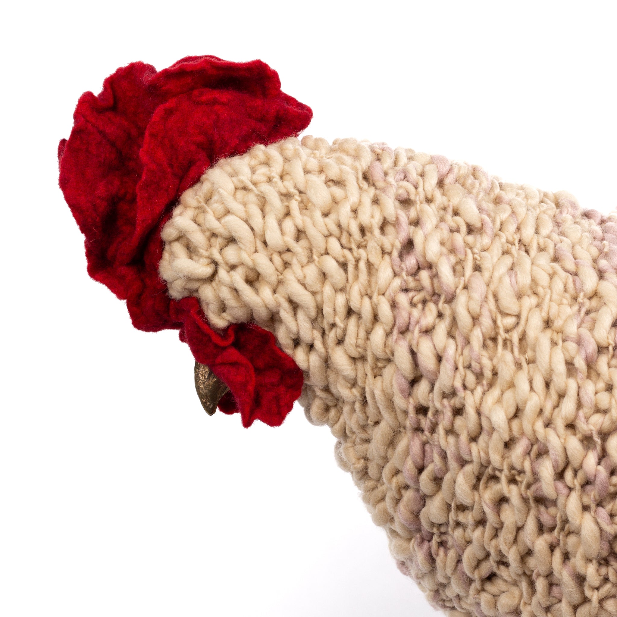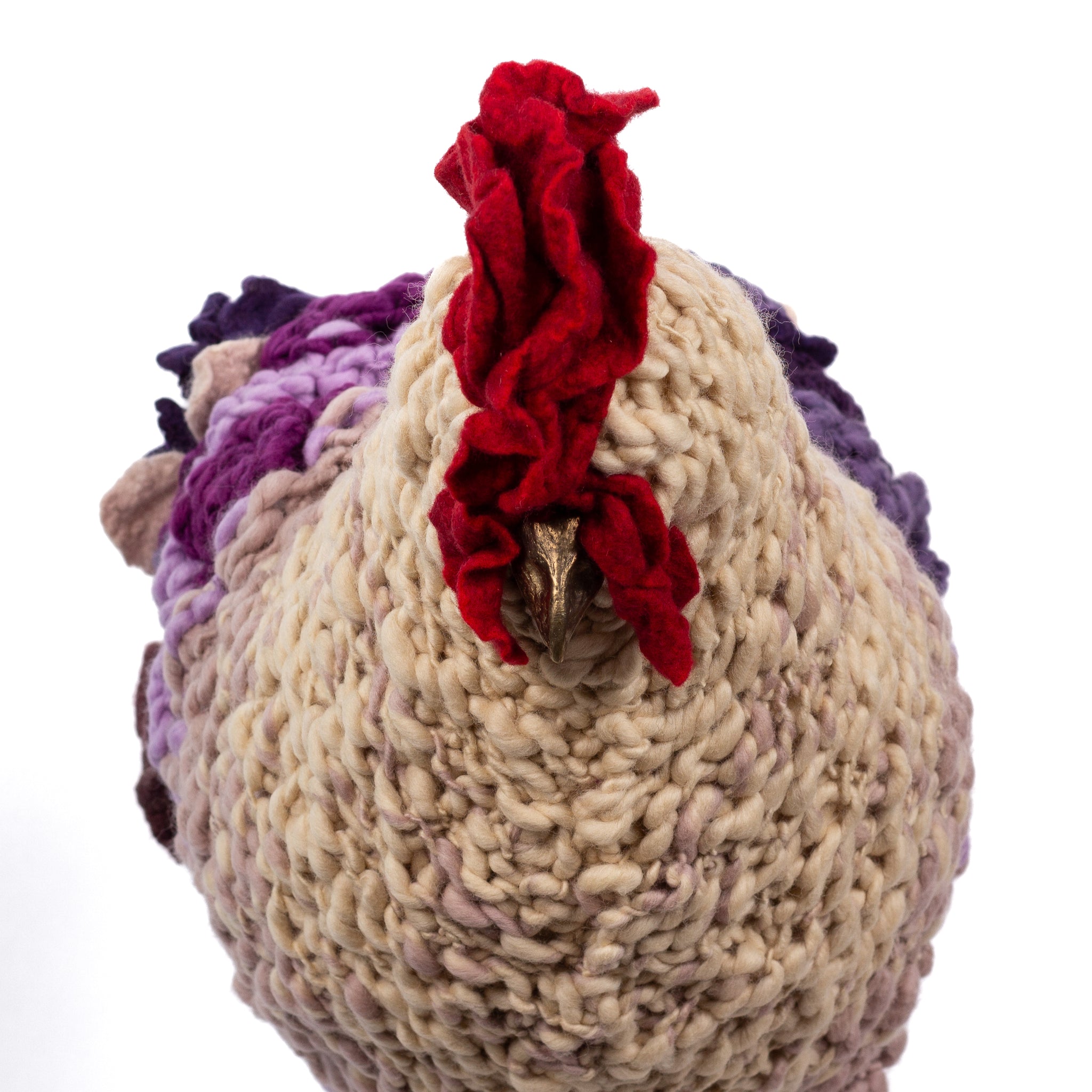 Fredrica is a Chicken Little Footstool whose feathers are fashioned with hand-knit 100% Merino wool. She is looking for a good home.